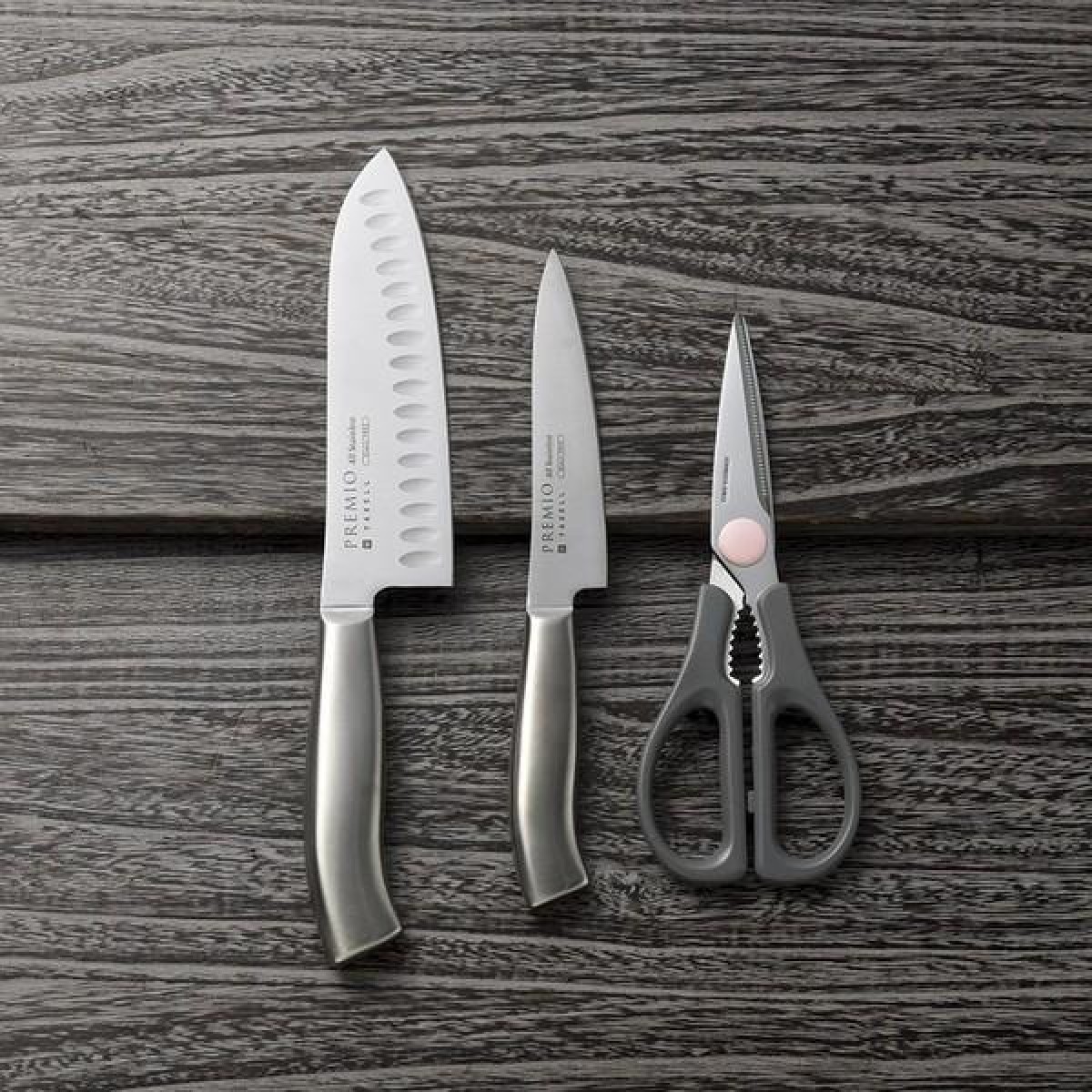 Japan Yaxell Premio Stainless Santoku Knife, Petty Knife & Kitchen Scissors Set