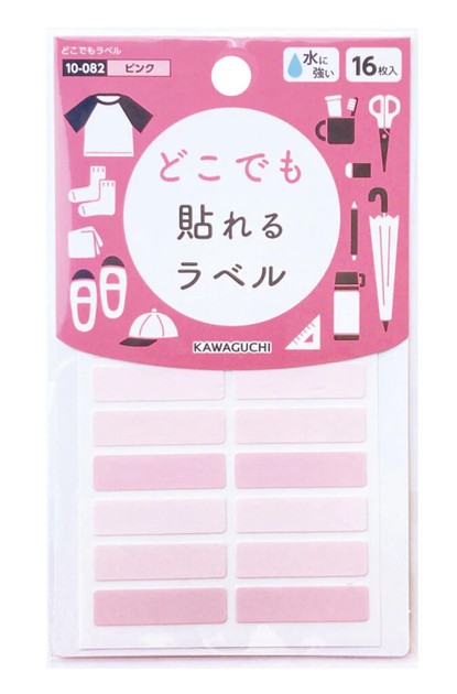 Japan KAWAGUCHI Stick On Waterproof Name Label 16pcs (Pink)
